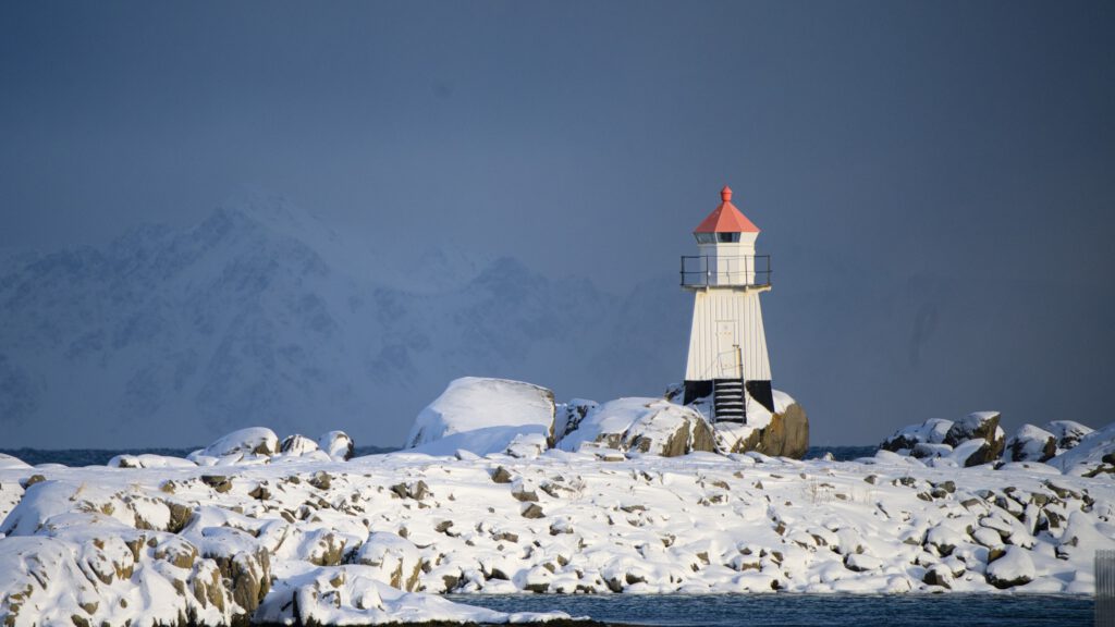 Leuchtturm bei Hov im Nordwesten von Gimsøya.