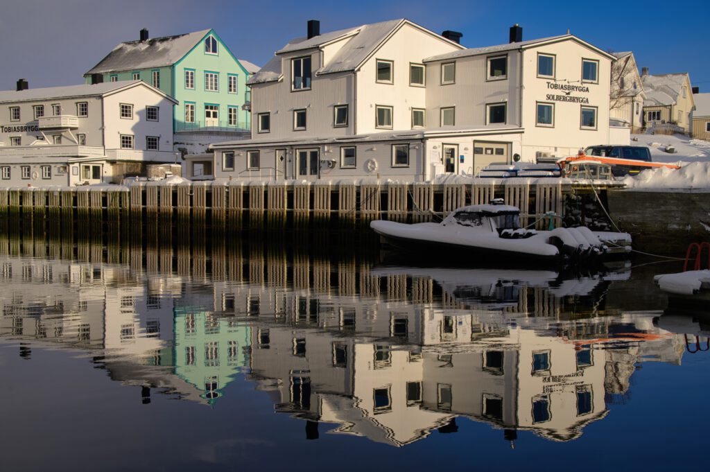 Henningsvær ist ein typischer Fischerort, der den mit der Fischerei einhergehenden Aufstieg im 19. Jh. und den Niedergang Ende des 20. Jh. mitgemacht hat. Erst seit 1983 ist Henningsvær über zwei Brücken an die Lofoten-Hauptinsel Austvågøya und damit an die E10 angebunden. Verschiedene Projekte und vor allem der einsetzende Tourismus in den 1980er Jahren belebten den Ort wieder. Heute ist es ein schöner Mix aus aktivem Fischereihafen, Restaurants (Tip: „Sabina“ mit Spanisch-Norwegischer Crossover-Küche, s.u.), Cafés und kleinen Läden.