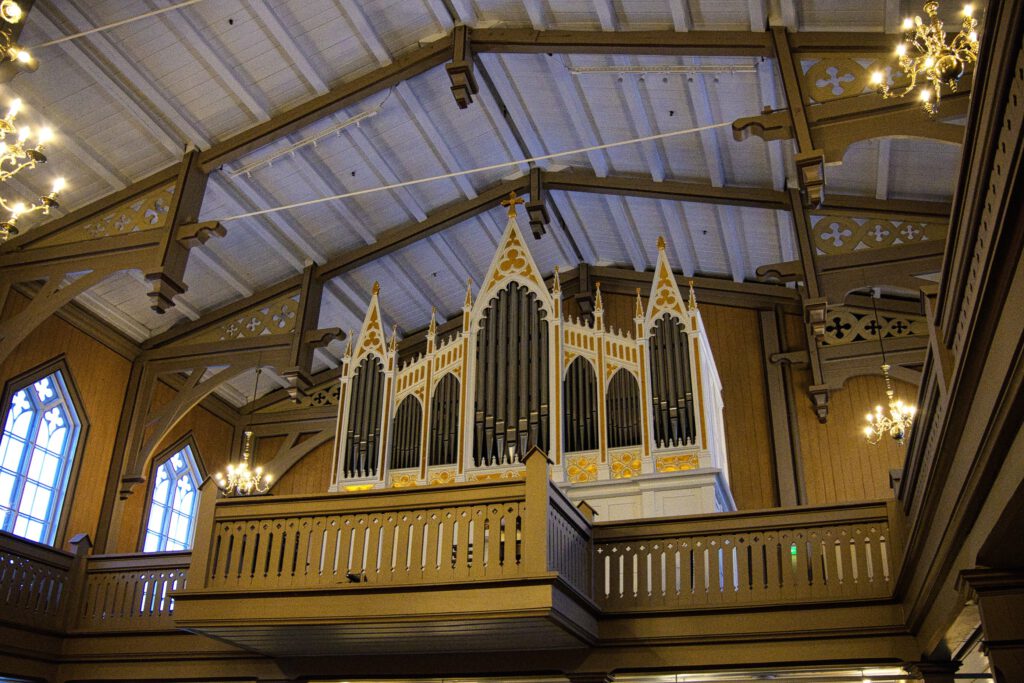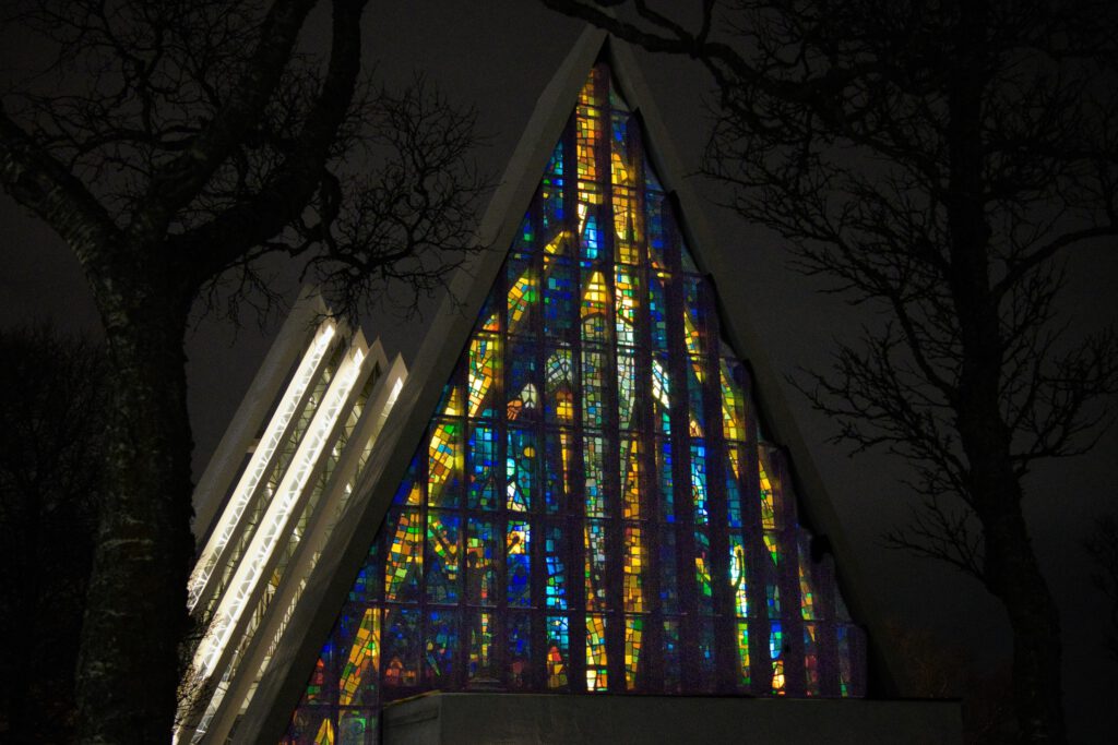 Die Kirche war schon geschlossen, ein Besuch kostet aber ohnehin nicht unerheblich Eintritt. Gern hätten wir eines der unter dem Motto Returning Light (die Polarnacht dauert in Tromsø rd. 2 Monate) stattfindenden Orgelkonzerte besucht. Leider war das nächste Konzert am Donnerstag, unserem Abreisetag.