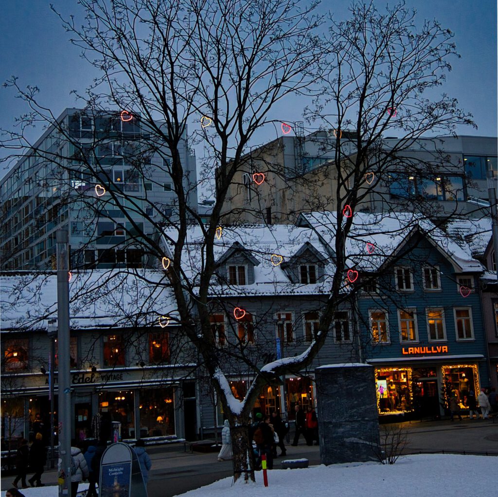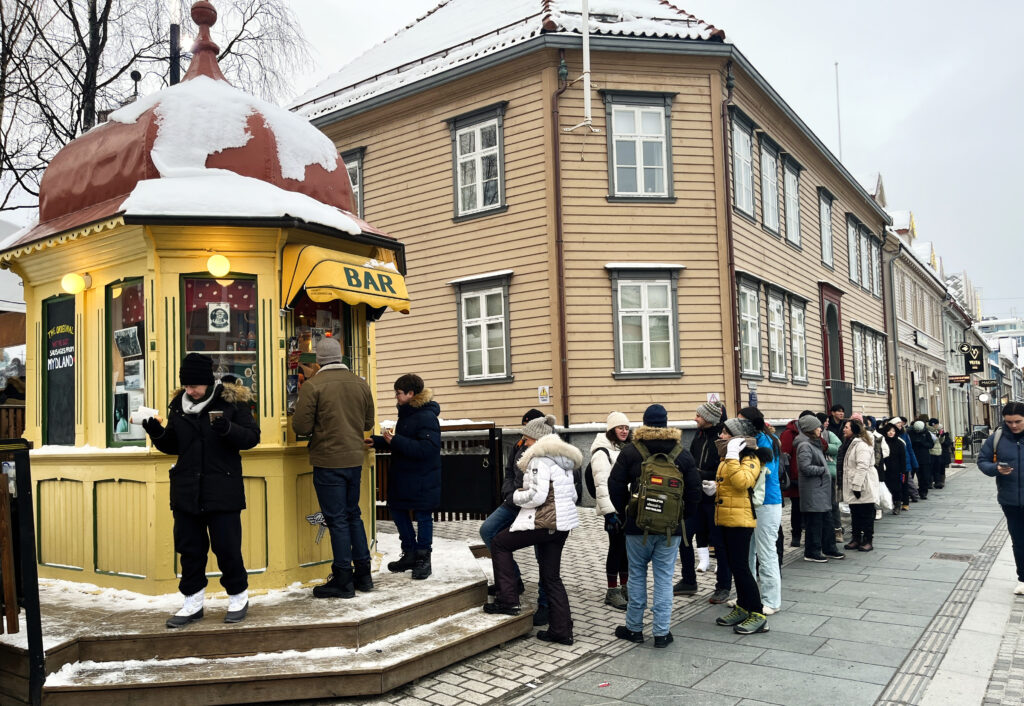 Das Wetter war recht bescheiden: Dichte, tief hängende Wolken und dem Wetterbericht zufolge keine Aussicht auf Besserung. So entschieden wir uns für einen Stadtbummel in Tromsø. Mit dem Bus ging es die wenigen Stationen ins Stadtzentrum. Den Fahrplan, Tickets und eine Liveverfolgung der Busse gibt es hier in der Region Troms in der App „Svipper“. Typisch Norwegen: App auch auf Englisch verfügbar, in wenigen Schritten ist das Ticket gebucht und mit der Kreditkarte bezahlt. Den dann in der App hinterlegten QR-Code scannt man im Bus am entsprechenden Gerät – alles schnell und einfach und im Grunde selbsterklärend.