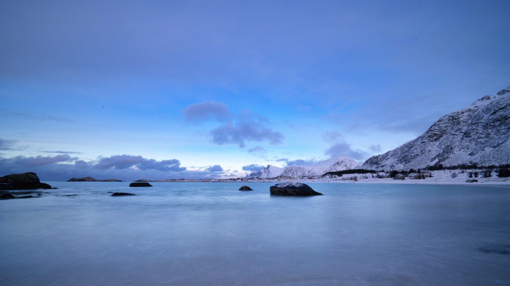 Die Strände der Lofoten sind auch im Winter einen Abstecher wert. Zwei sehenswerte an der Nordküste haben wir besucht: Rambergstranda und Vik Strand / Hauklandstranda. Auf dem Weg dazwischen gab es immer wieder wunderschöne bis dramatische Landschaften im wechselnden Licht zu bewundern.